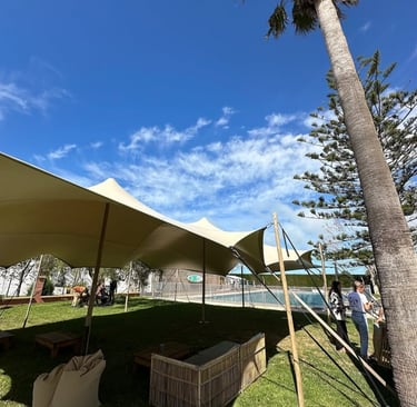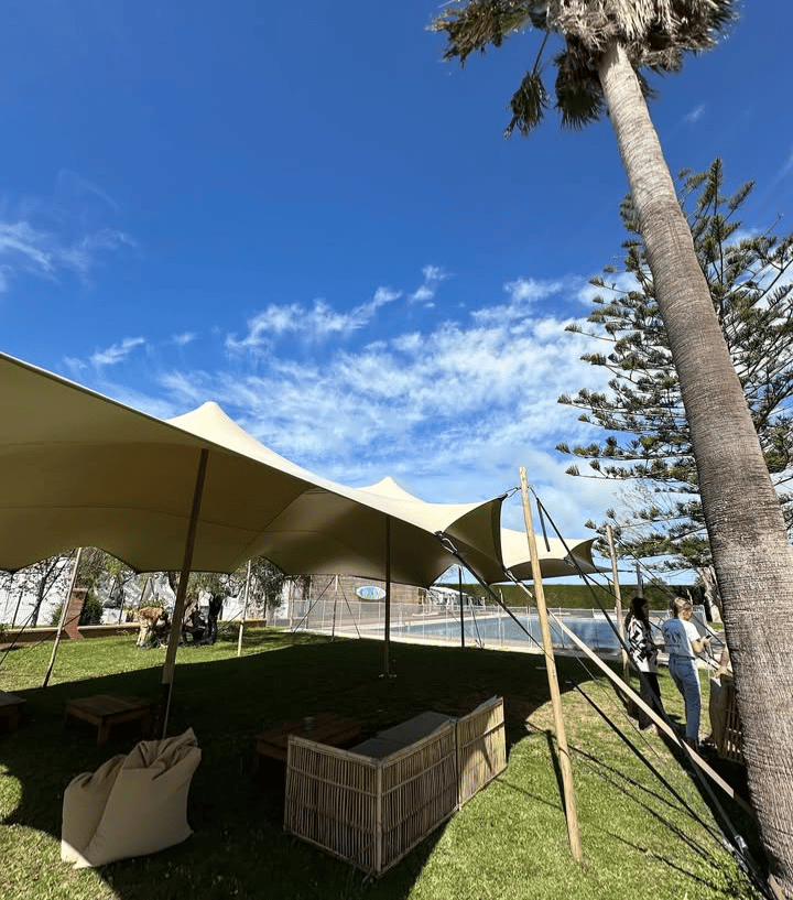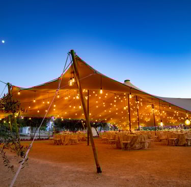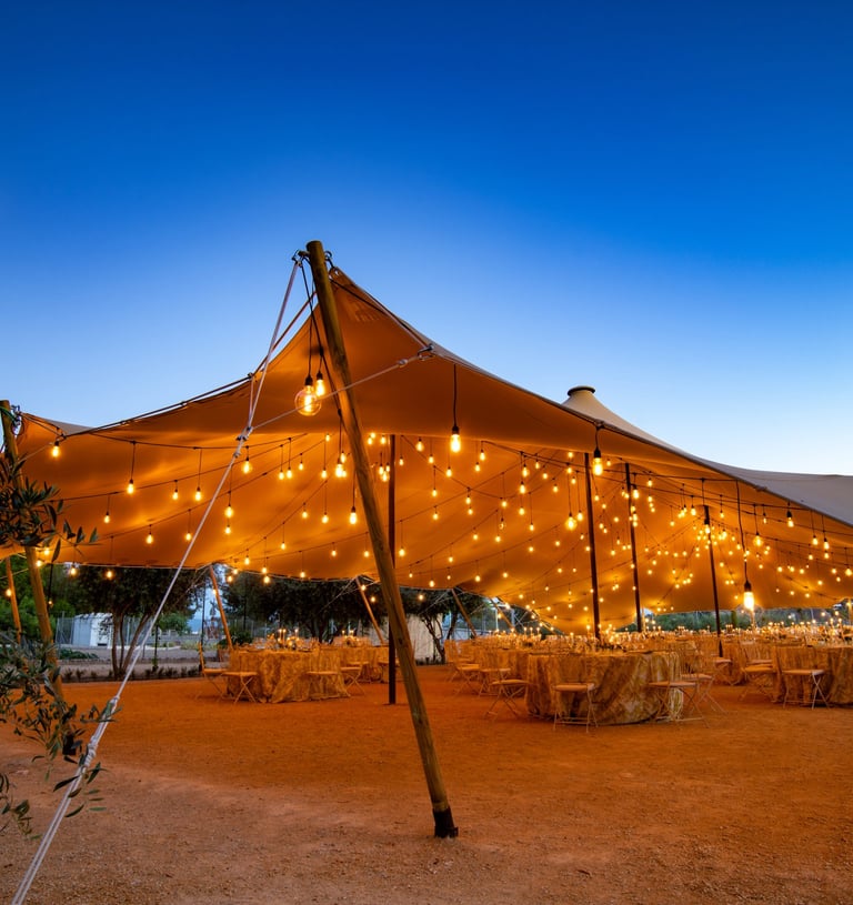 Carpa tensada de diseño elegante y estructura flexible.